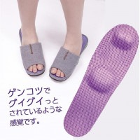 足裏全体を指圧する従来の健康スリッパと違い、指圧箇所を絞り込むことによって、ピンポイントに! まるでゲンコツでグイグイっとされているような感覚です